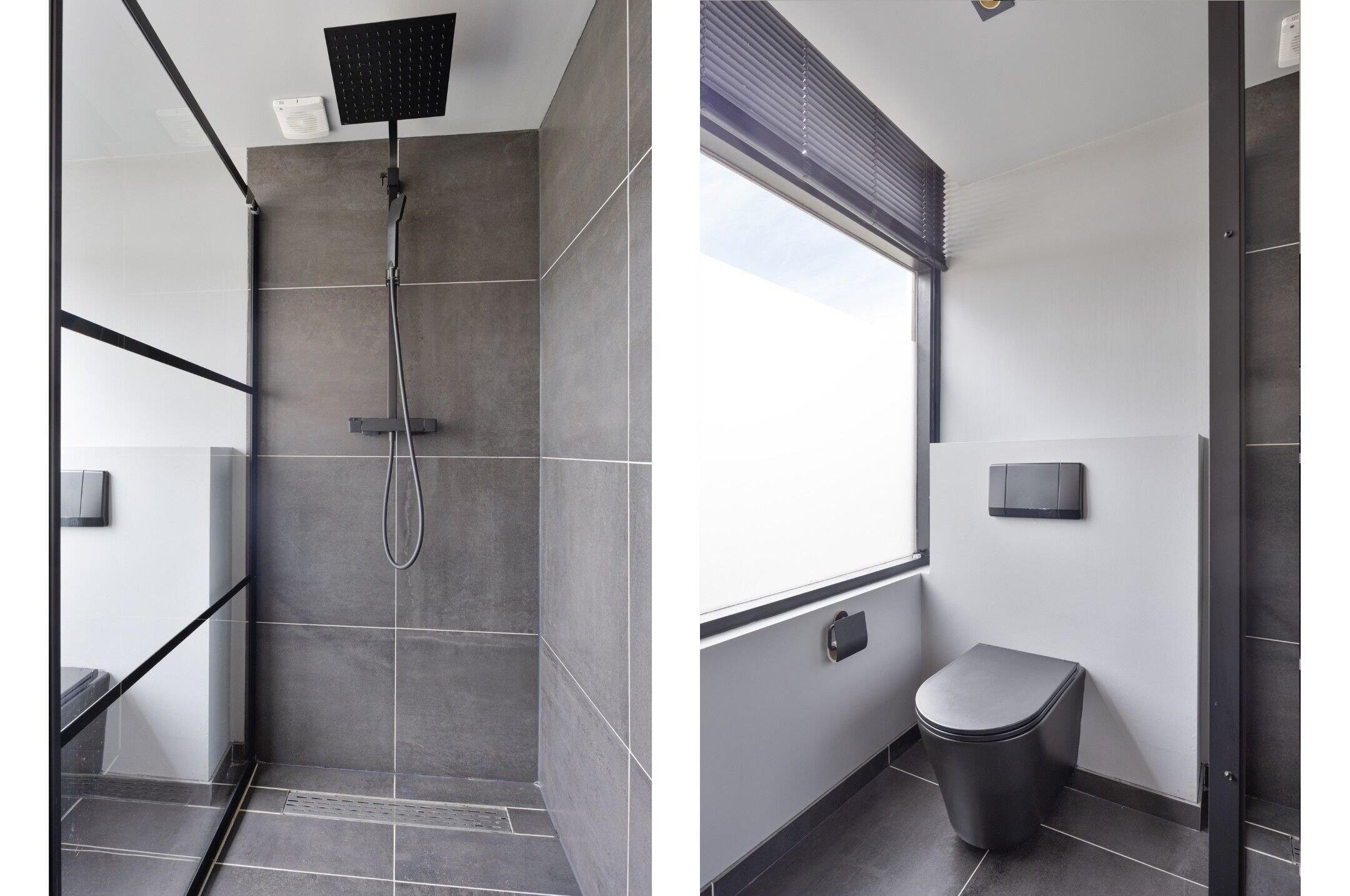 - Inloopdouche, toilet, en wastafel