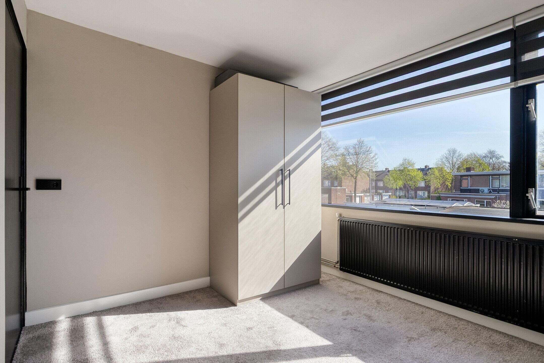 De ruime hoofdslaapkamer is voorzien van een vernieuwde inbouwkast met zowel hang- als legruimte. De tweede slaapkamer is eveneens goed van formaat.