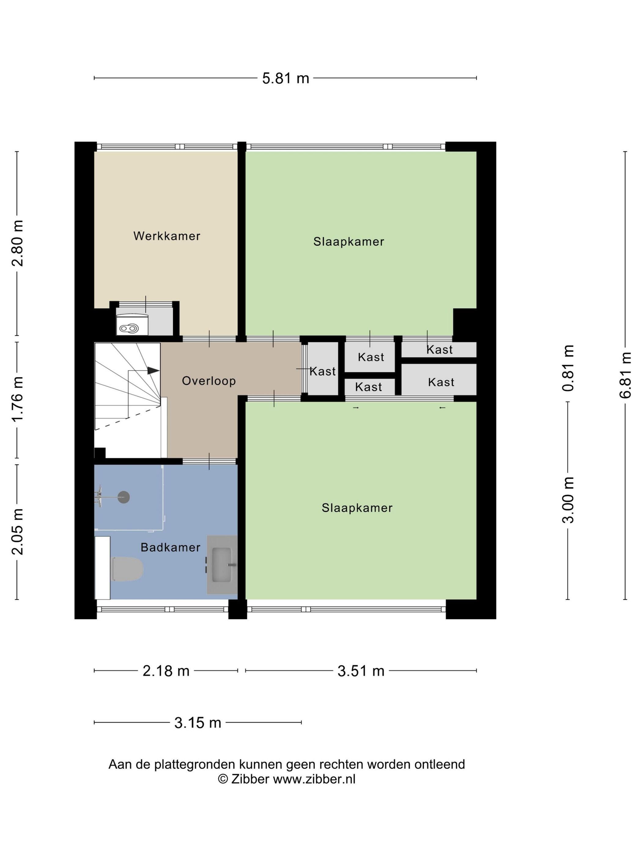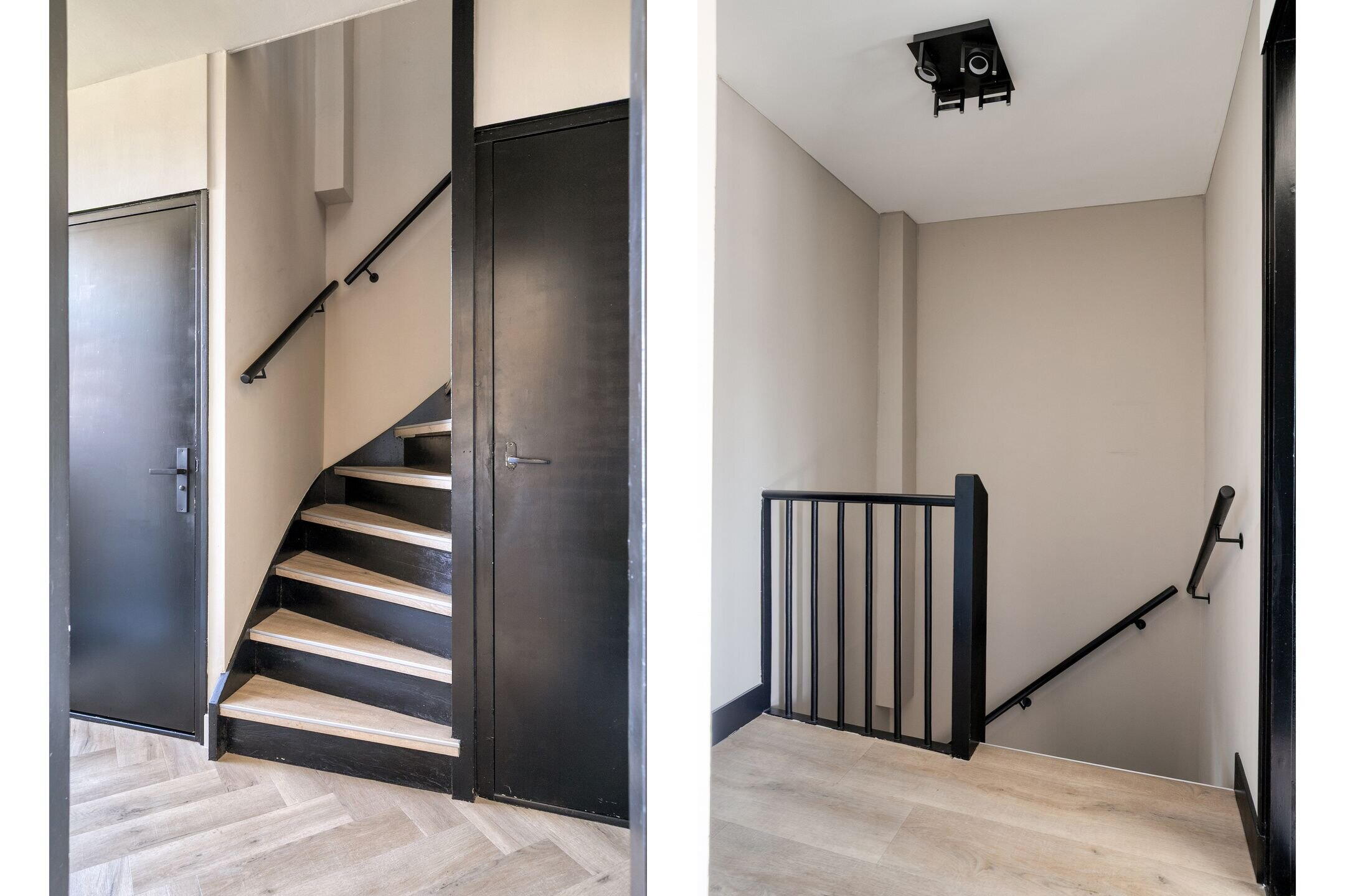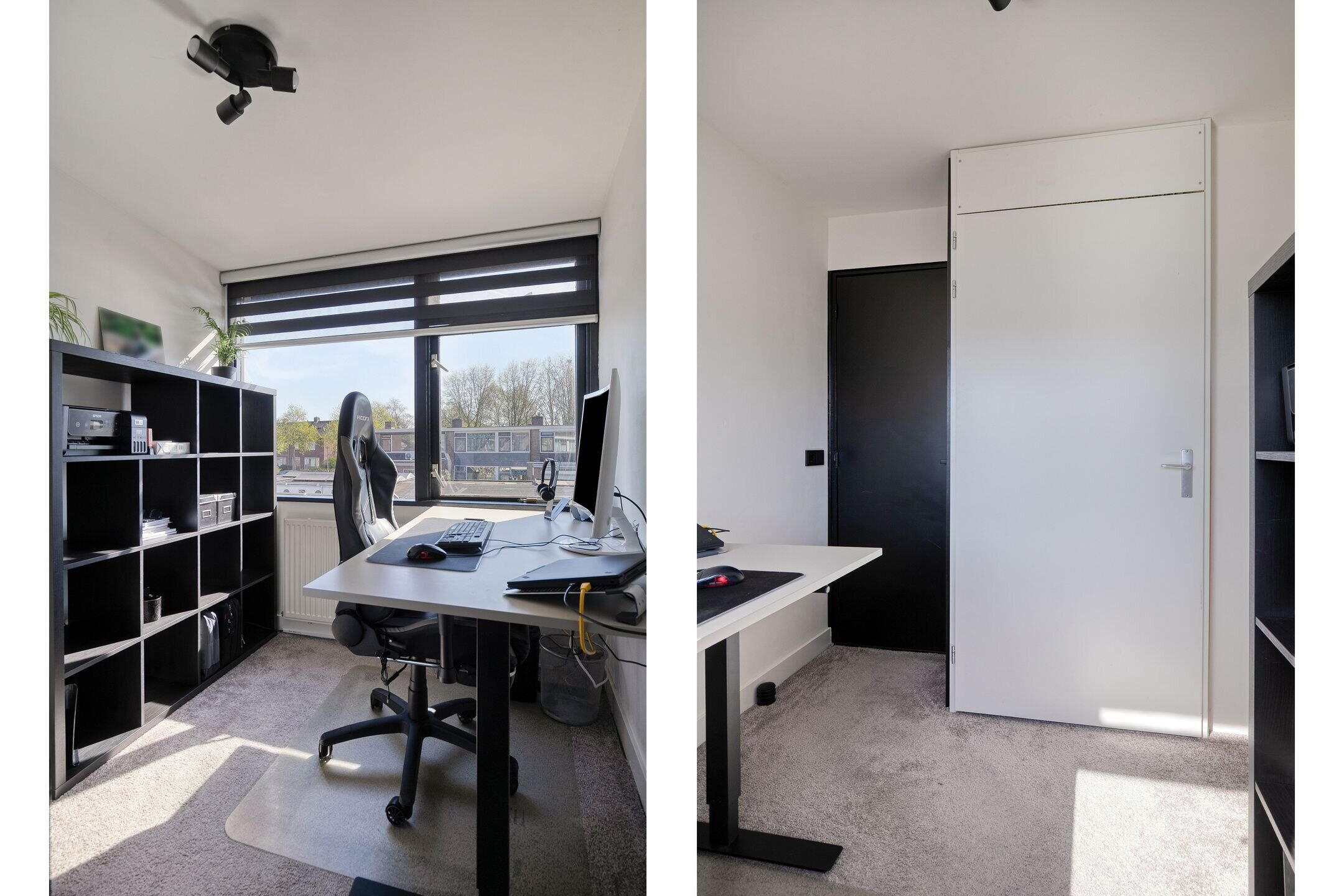 De verdieping is volledig afgewerkt en voorzien van een nieuwe vloer. Hier bevinden zich drie slaapkamers, waarvan één momenteel in gebruik is als werkkamer. Deze kamer beschikt tevens over een elektrische screen (2024) en een afgesloten kast met de cv-installatie (Intergas, 2017).