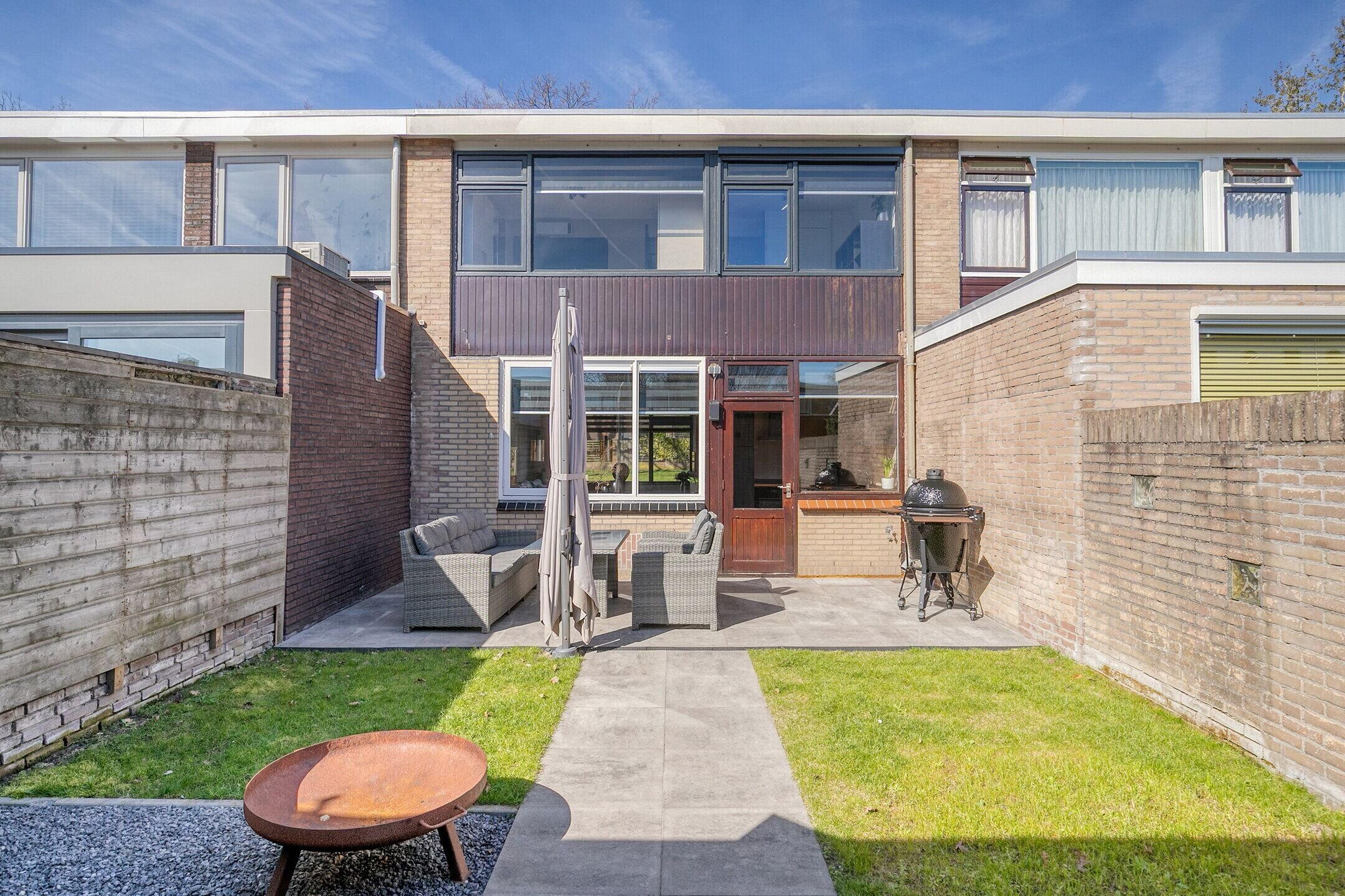 De achtertuin is in 2024 opnieuw aangelegd en ligt op het oosten, waardoor je hier heerlijk van de ochtend- en middagzon geniet. De tuin heeft een fraai aangelegd terras, gazon en siergrind, wat zorgt voor een speels en onderhoudsvriendelijk geheel.
