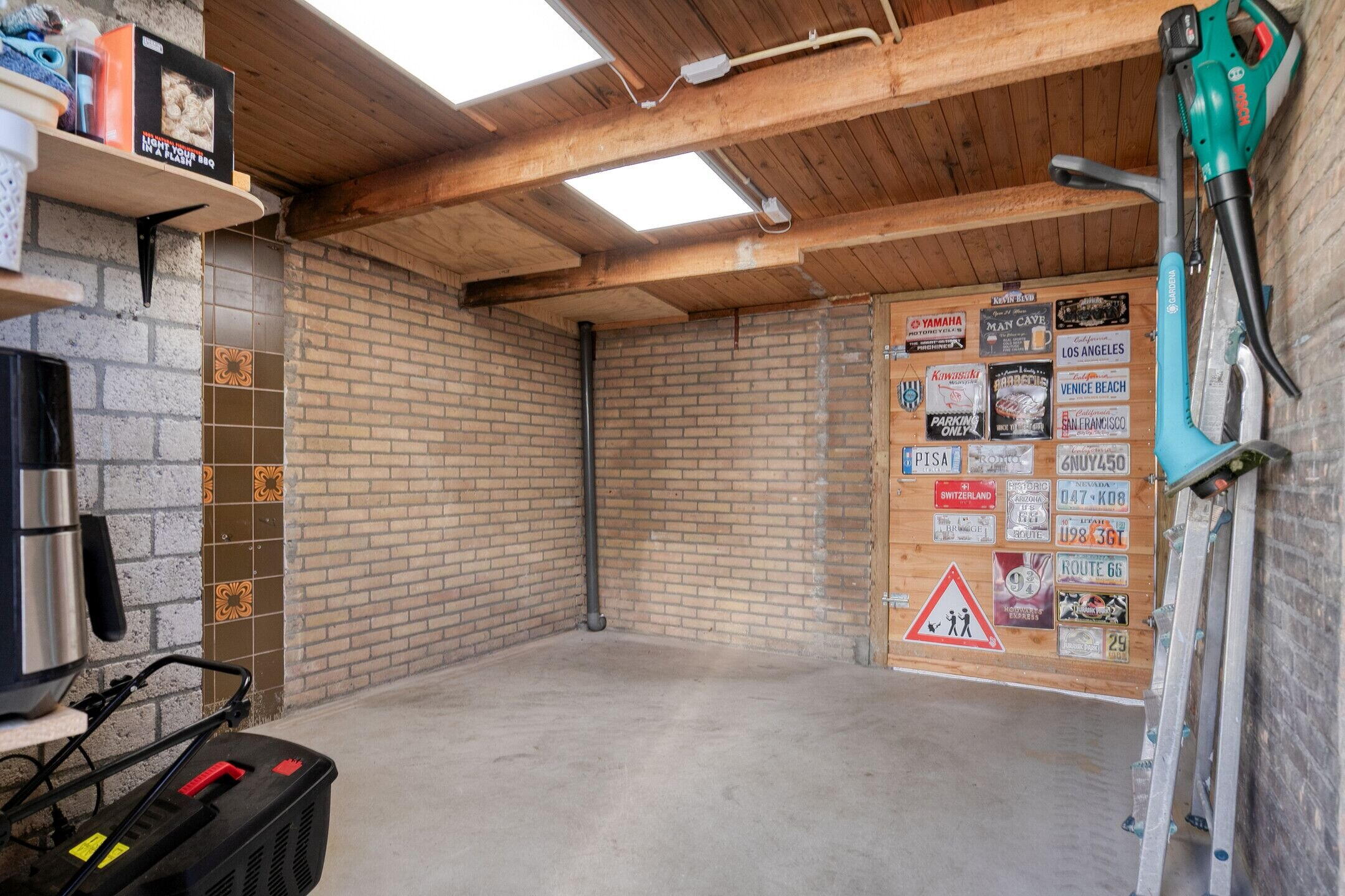 Via de tuin bereik je de vrijstaande stenen schuur, voorzien van elektra, wateraansluiting en een eigen groepenkast (ideaal voor wasmachine en droger). De tuin is tevens bereikbaar via een verbrede achterom.