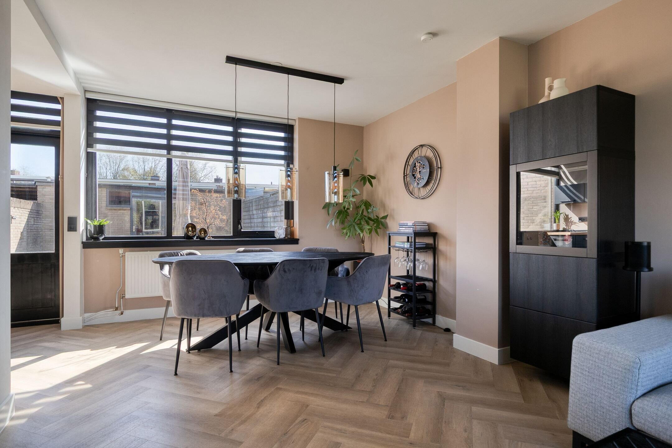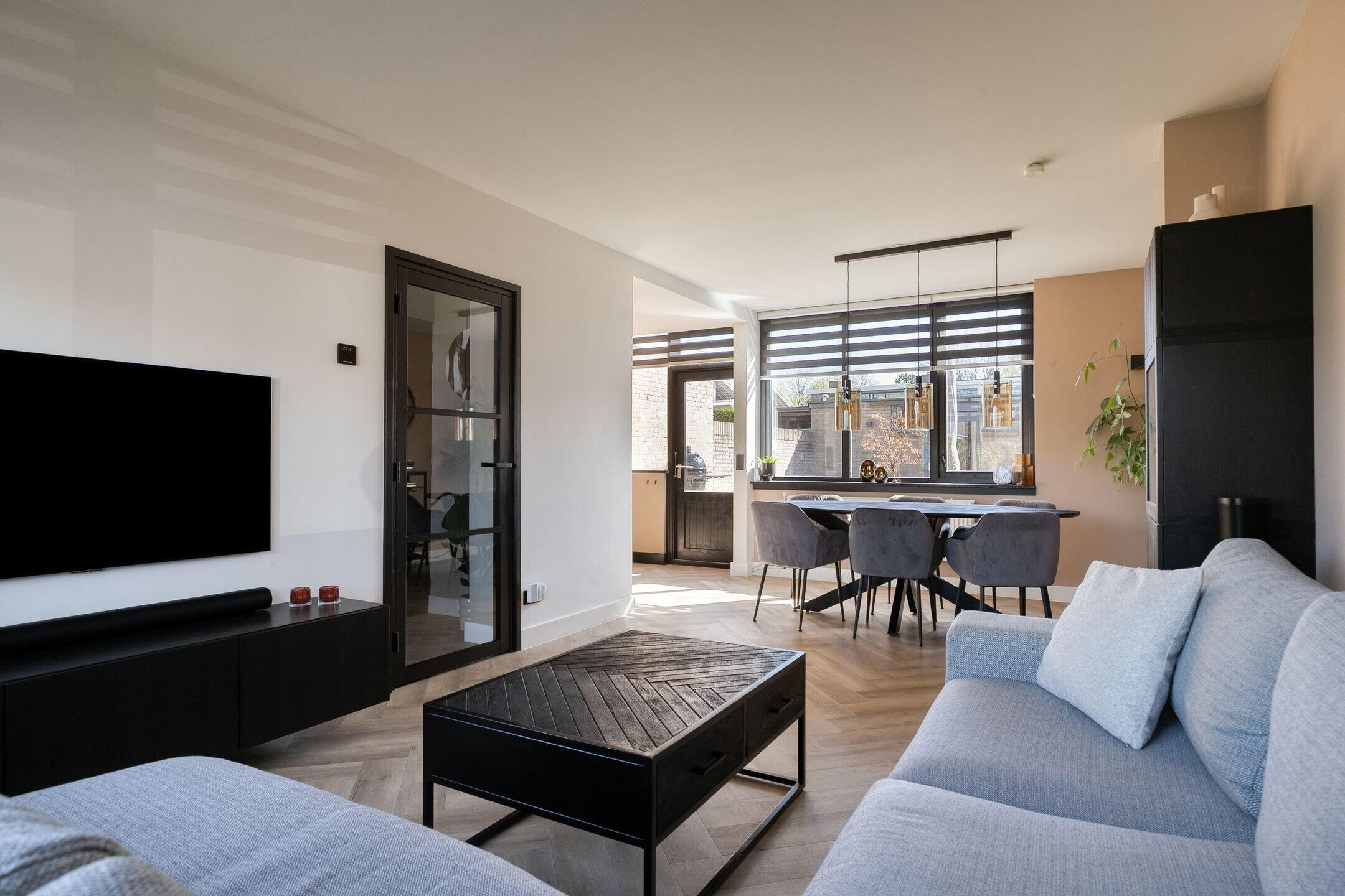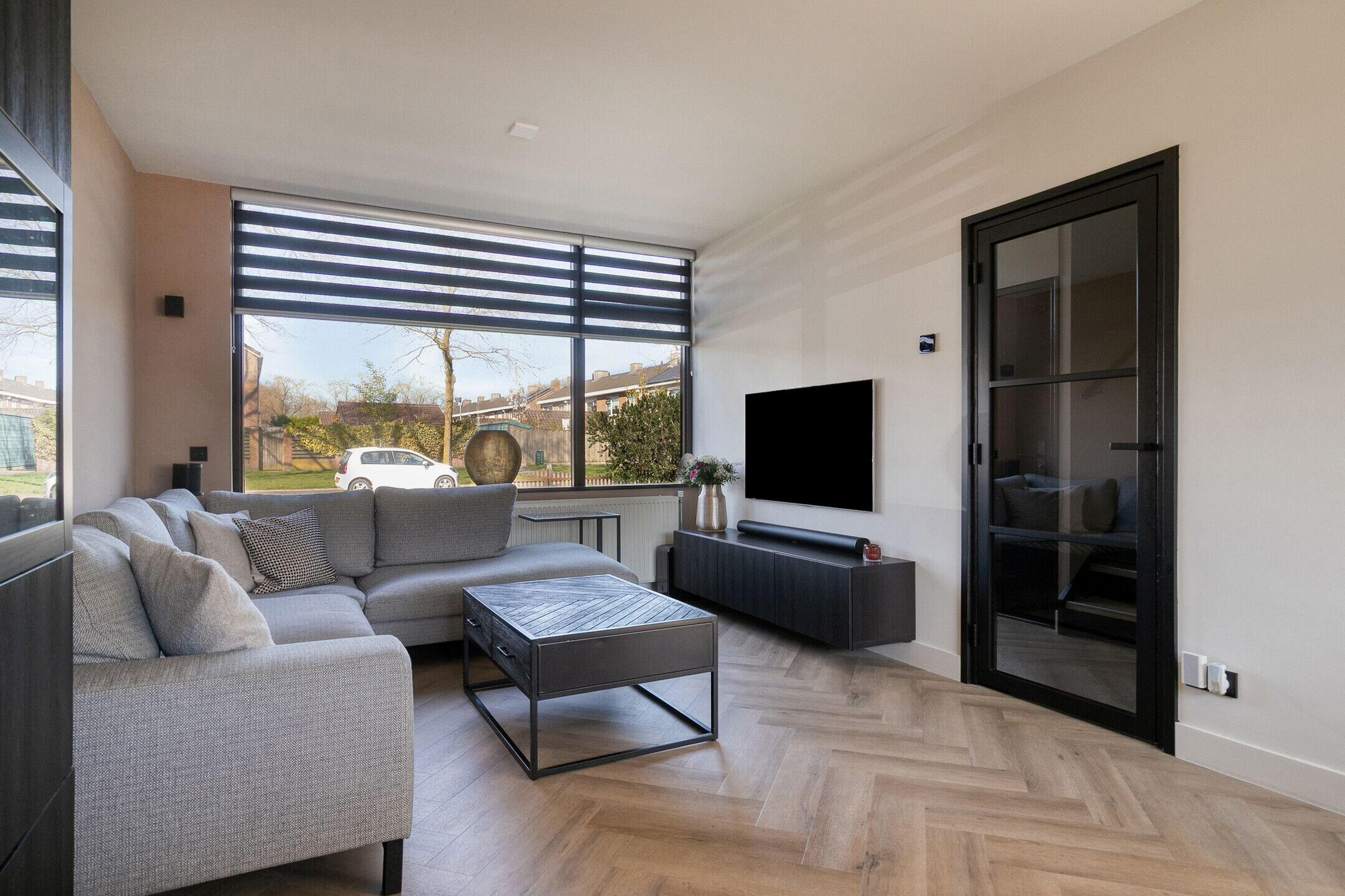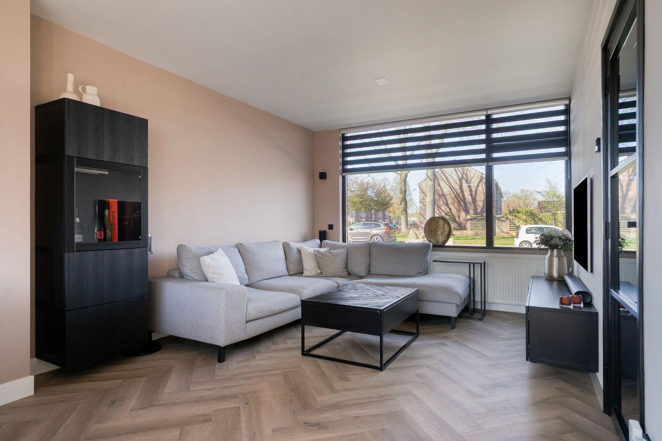 De doorzonwoonkamer is licht en ruim, met grote raampartijen en een prettige indelingsmogelijkheid. Aan de voorzijde is een elektrisch screen geplaatst en er is glasvezel aanwezig. Tevens is er een mogelijkheid tot uitbouw aan de achterzijde.
